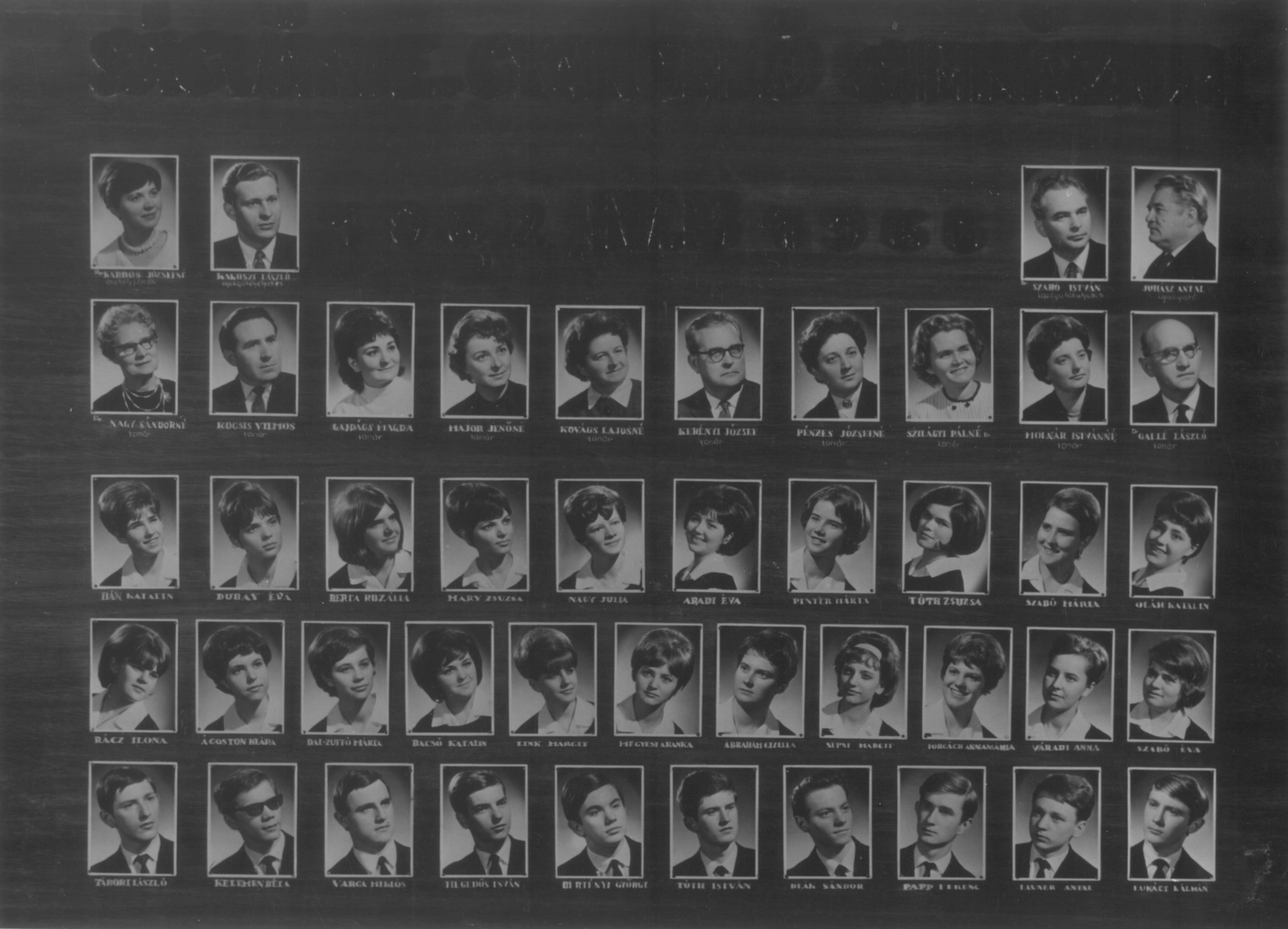 Ábrahám Gizella Irén, Ágoston Klára, Aradi Éva, Bacsó Katalin, Bán Katalin, Berta Rozália, Bertényi György Andor, Dal-Zuffó Márta, Deák Sándor Jenő, Dubay Éva Etelka, Forgách Annamária, Hegedűs István, Kelemen Béla, Lavner Antal János, Link Margit, Lukács Kálmán János, Mari Zsuzsanna, Megyesi Aranka, Nagy Julianna, Oláh Katalin, Papp Ferenc, Pintér Márta, Rácz Ilona, Sepsi Margit Kornélia, Szabó Éva Márta, Szabó Mária, Tábori László, Tóth István, Tóth Zsuzsanna, Váradi Anna, Varga Miklós András