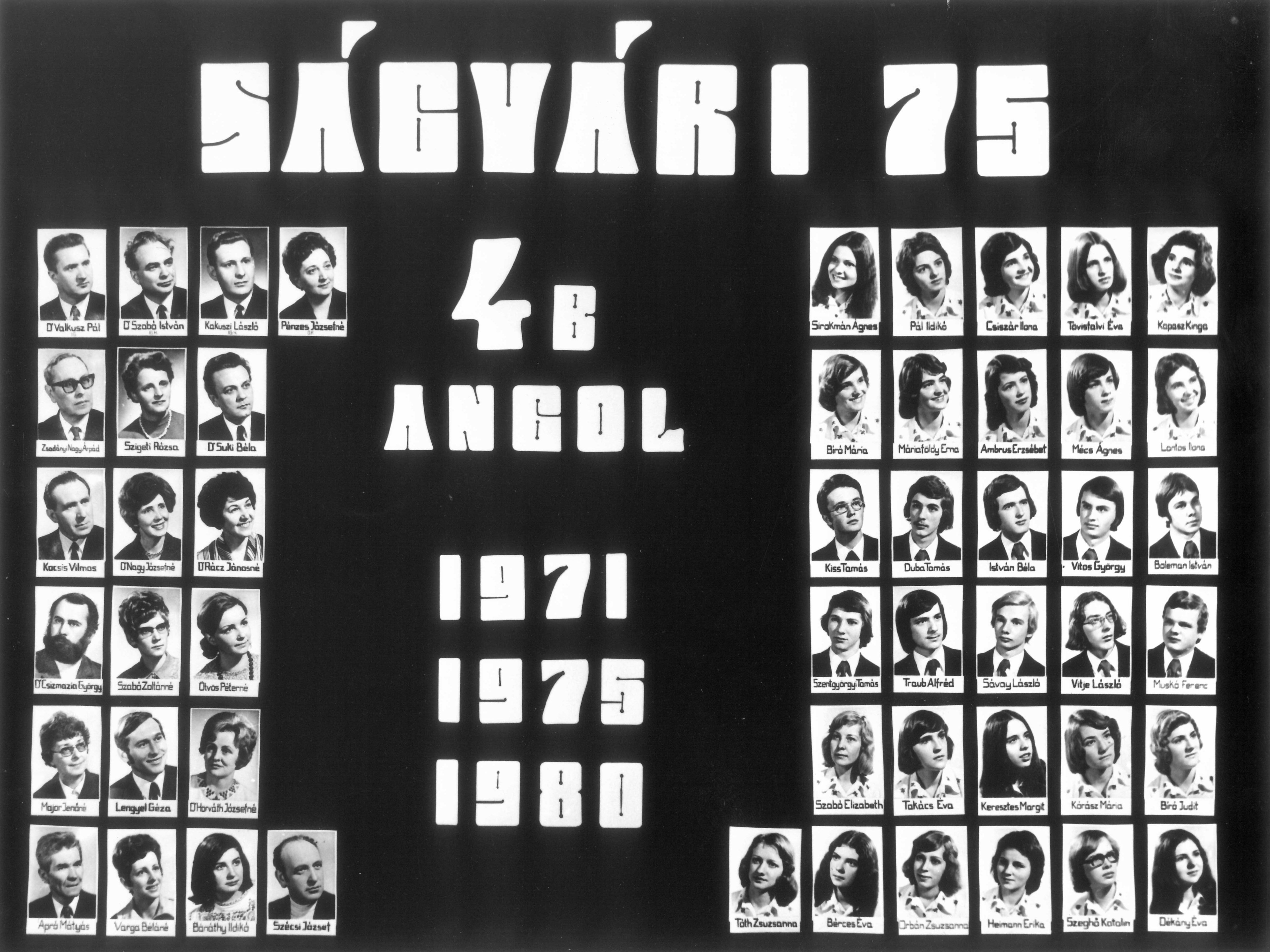 Ambrus Erzsébet, Bérces Éva, Bíró Judit, Bíró Mária, Boleman István, Csiszár Ilona, Dékány Éva, Duba Tamás, Heimann Erika, István Béla, Keresztes Margit Ágnes, Kiss Tamás Imre, Kopasz Kinga, Kórász Mária, Lantos Ilona, Máriaföldy Erna Erzsébet, Mécs Ágnes Katalin, Muskó Ferenc, Orbán Zsuzsanna Klára, Pál Ildikó Mária, Sávay László József, Sirokmán Ágnes Katalin, Szabó Elisabeth Margaret, Szeghő Katalin, Szentgyörgyi Tamás, Takács Éva, Tóth Zsuzsanna Mária, Tövisfalvi Éva, Traub Alfréd, Vitje László György, Vitos György