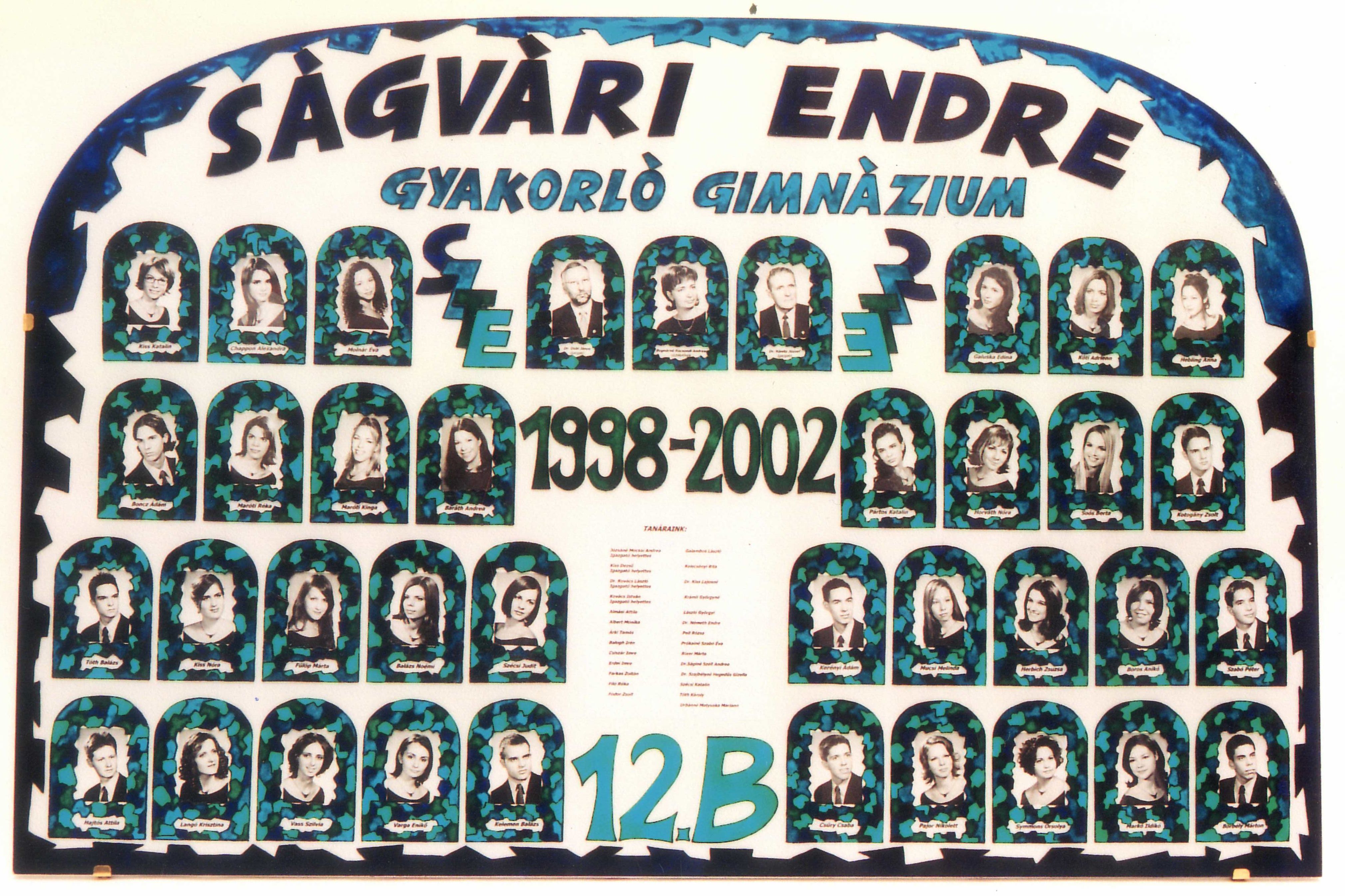 A 2002-ben érettségizett B osztály ballagási meghívójának az osztályhoz tartozó oldala. (2019-05-11)