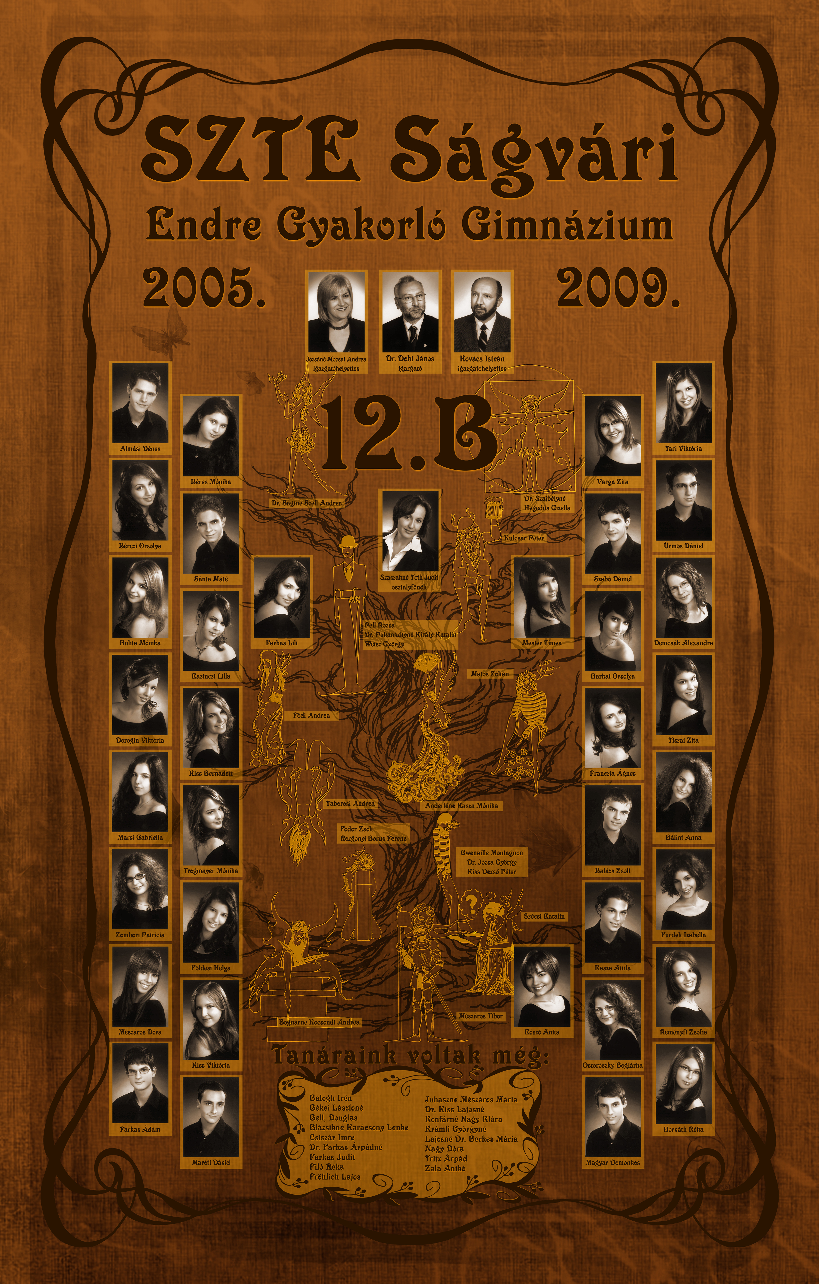 A 2009-ban érettségizett B osztály ballagási meghívójának az osztályhoz tartozó oldala. (2019-09-05)