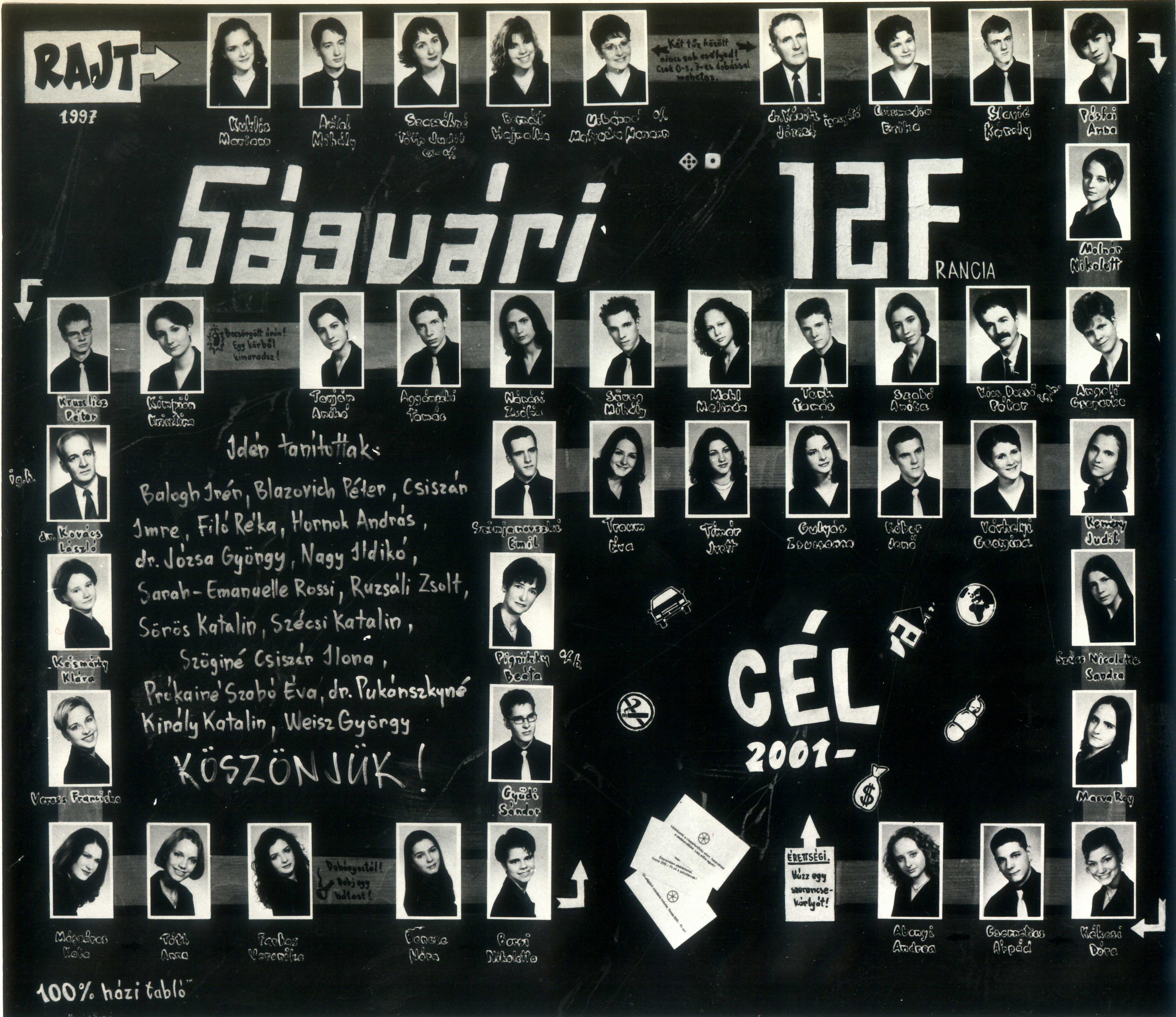 A 2001-ben érettségizett F osztály ballagási meghívójának az osztályhoz tartozó oldala. (2019-05-11)