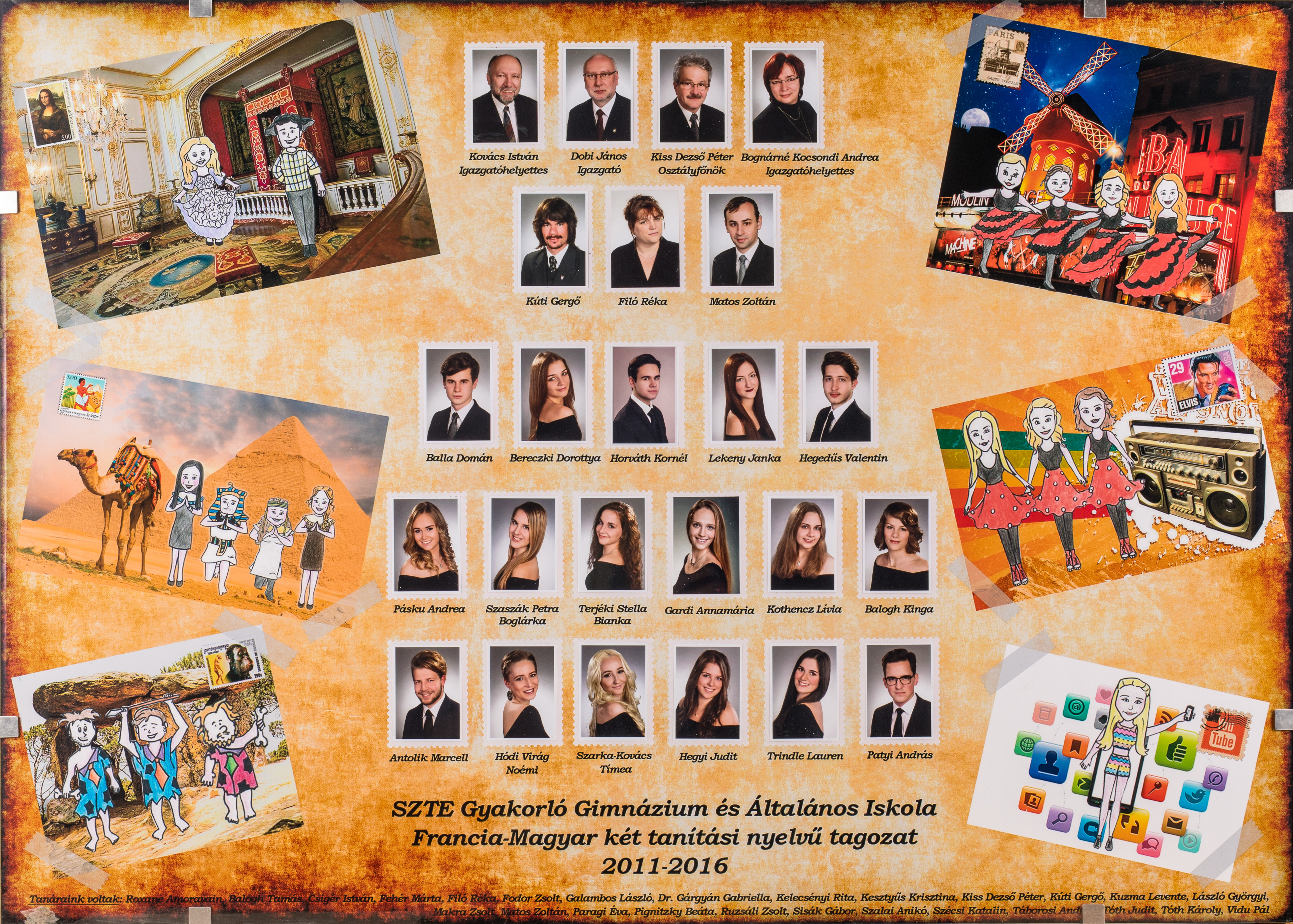 A tablón szereplő tanárok névsora: