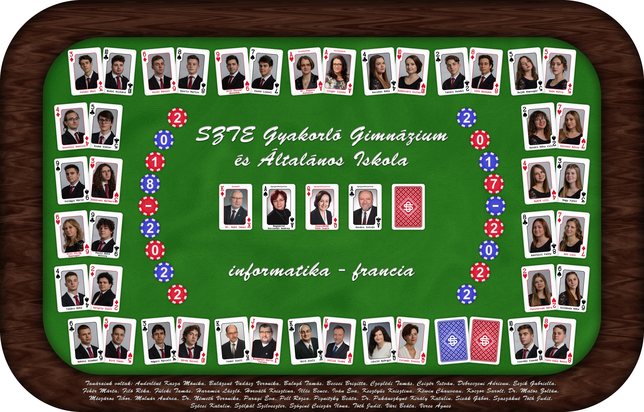 A tablón szereplő tanárok névsora: