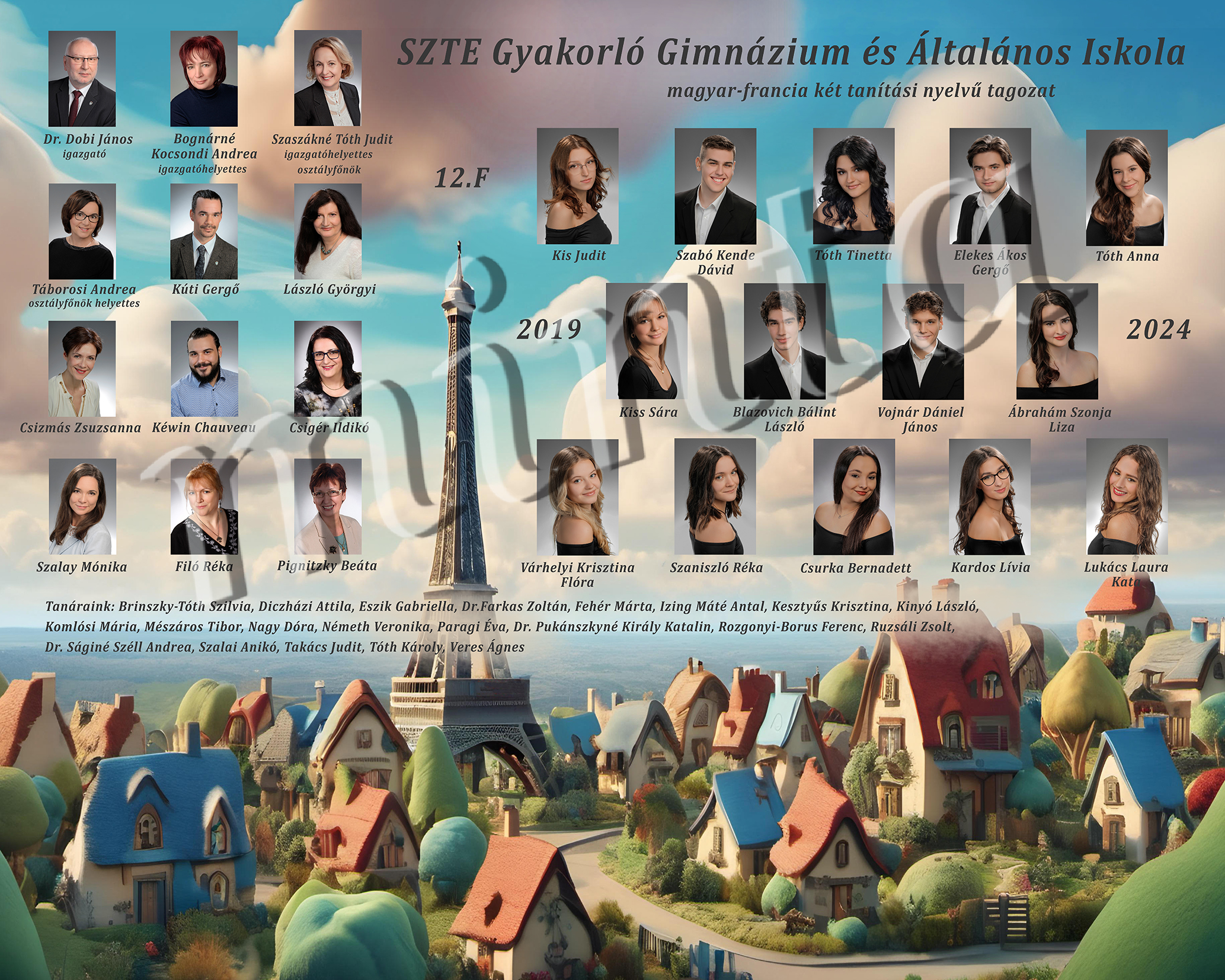 A tablón szereplő tanárok névsora: