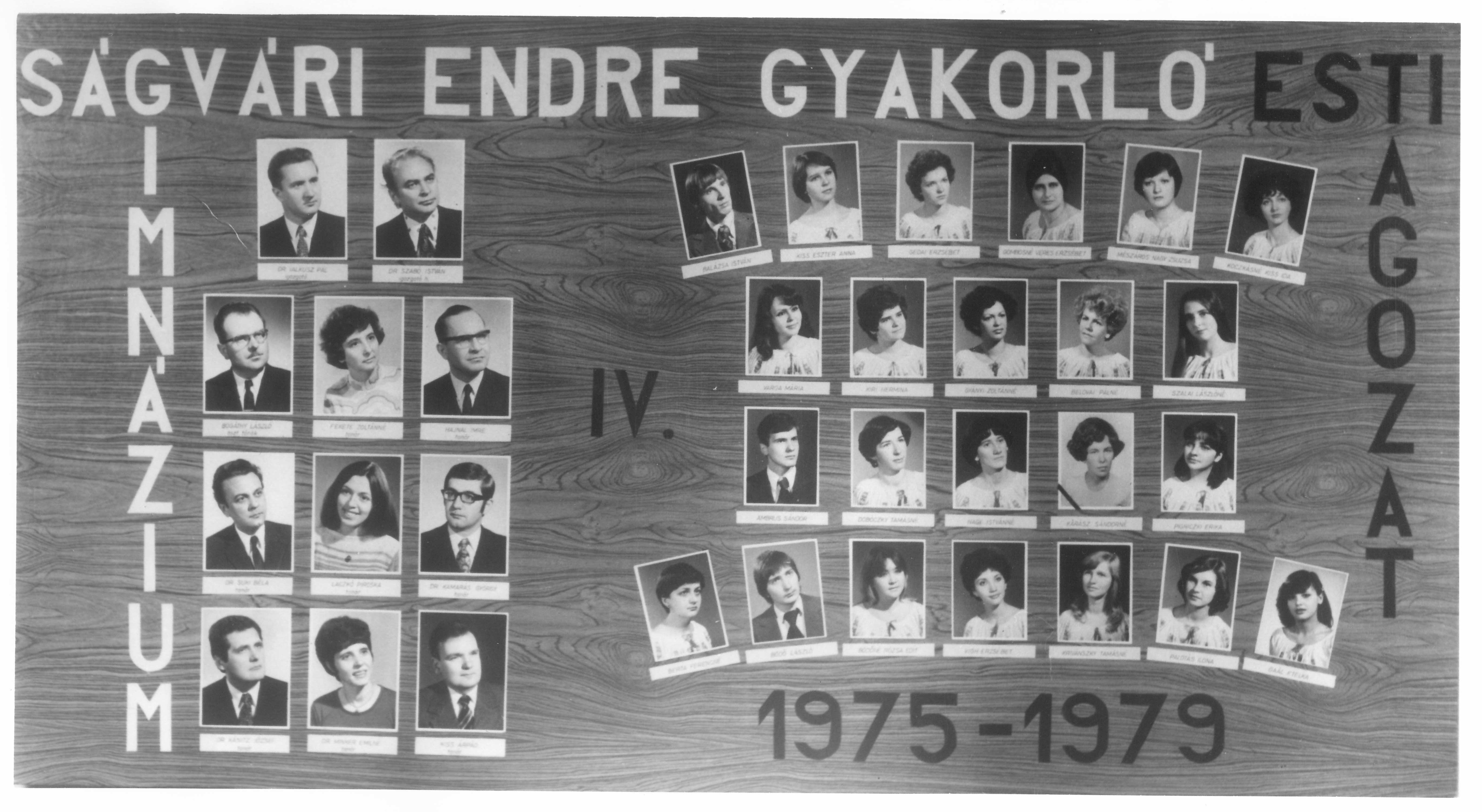 A tablón szereplő tanárok névsora: